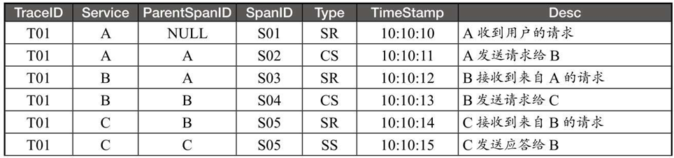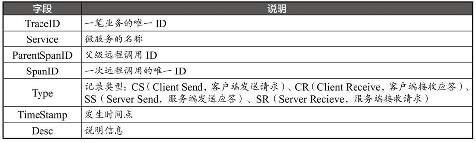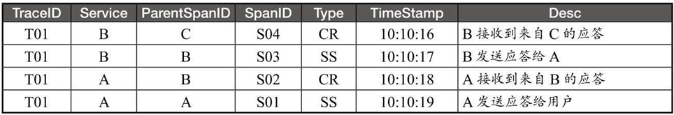 首先可以设计一张链路追踪记录表,如表3-1所示。