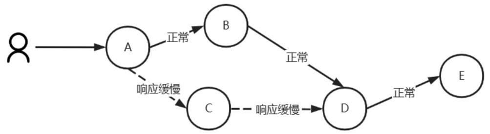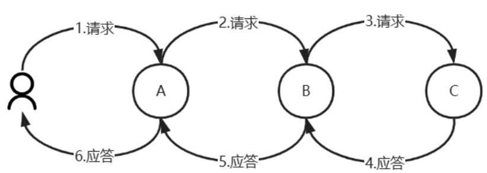 分布式服务的典型特点是调用关系复杂,用户发起的一次请求可能经过一系列相关的服务调用才能完成整个业务,具体的调用链路是什么,每个微服务处理的时间有多长,哪个链路快,哪个链路慢,哪个服务节点是业务瓶颈,这些很难去分析和判断。微服务调用链路如图3-38所示。因此,微服务需要一个重要的能力就是链路追踪能力。