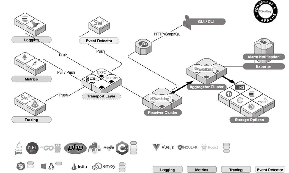 SkyWalking是一个可观察性分析平台和应用程序性能管理系统。提供分布式跟踪、服务网格遥测分析、度量聚合和可视化多合一解决