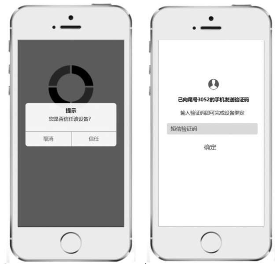当用户点击“信任”按钮时,服务端会向用户的注册手机发送短信验证码,只有用户输入正确的验证码,才可以添加信任设备。