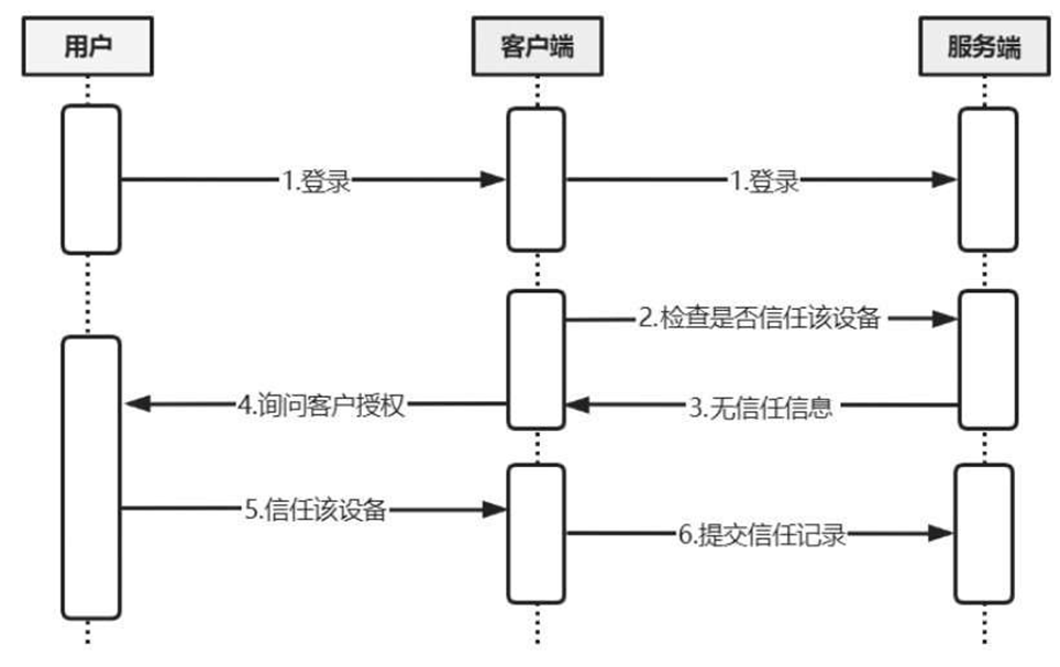 (3)     服务端检查授信记录,发现用户没有信任过该设备,则返回无授信记录。