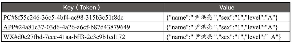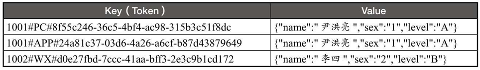 各端的Token不同,而用户信息相同。如果此时想要只将App端的全部用户踢出(清空App端的Redis数据),则无法做到,因为无法区分哪个是App端使用的Token。所以,服务端在存储Key的过程中要与 SecretID进行组合存储(Key=SecretID+Token),Redis存储如表4-5所示。