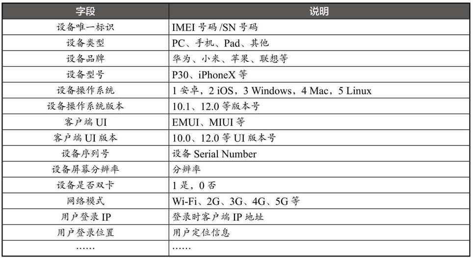 多设备登录时,需要将客户端设备信息尽量完整地记录下来。因为很多的系统问题都是由兼容性问题引起的,便于排查问题,设备信息如表4-7所示。