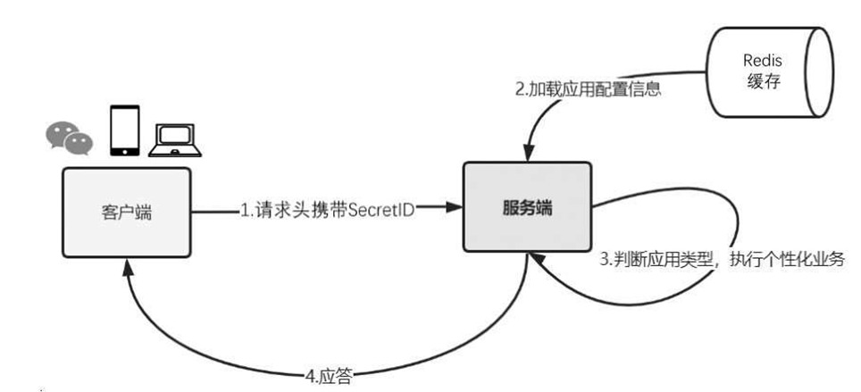 (2)     服务端从请求头中获取SecretID,然后从Redis中查询完整的应用信息。