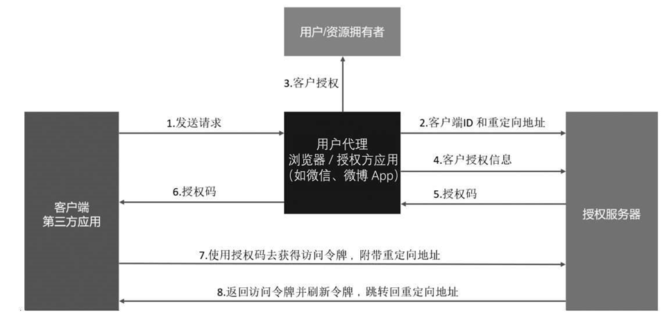 微信扫码登录流程包含8个步骤,授权码模式交互流程如图4-46所示。