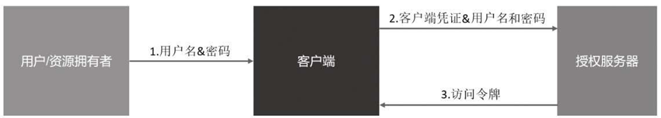 密码模式是大多数系统采用的模式,用户直接在客户端页面上录入用户名和密码,由客户端携带客户端凭证(客户端标识)、用户名和密码去请求授权服务器,授权服务器验证客户端是否可信,用户名和密码是否正确;如果验证无误,则返回访问令牌,客户端携带访问令牌即可进行资源访问。密码模式交互流程如图4-48所示。