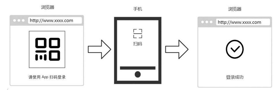 扫码登录流程如图4-50所示,总体分为以下3个步骤。