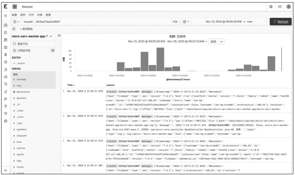 (3)     具有链路追踪能力:能够一次性查询到单笔交易中的所有日志。