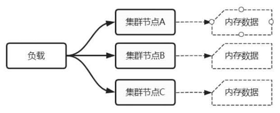 在集群架构下,每个节点都有自己的内存缓存,它们相互之间无法共用,并且缓存的内容都是重复的,但是存取速度极快,如图2-91所示。
