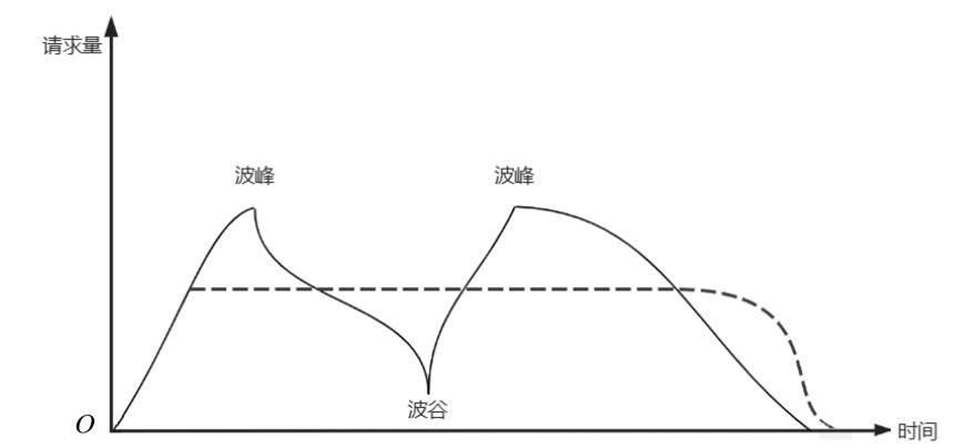 使用Kafka、RabbitMQ、ActiveMQ、RocketMQ等消息队列中间件,能达到削峰填谷的效果。客户端的请求并不是稳定而持续的,而是有时流量很大,有时流量很小。流量大时可能超出服务的处理能力,流量小时又无法发挥服务的最佳性能。
