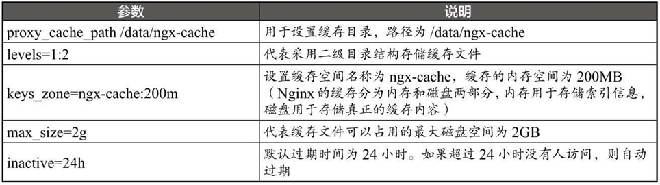 表2-5 Nginx代理缓存参数说明