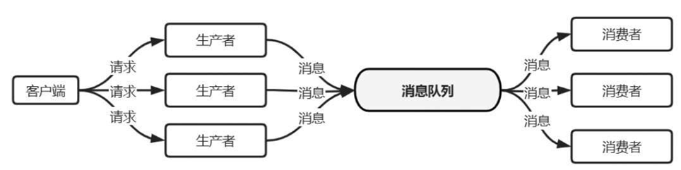 在消息队列模式下,可以通过增加生产者的数量来增加客户端连接数,在高并发的情况下让更多的用户请求接入进来(图2-96)。当消费者处理能力不足时,例如,业务复杂而处理缓慢,可以通过增加消费者的数量来提高业务处理能力。就算无法快速增加消费者节点,也可利用MQ强大的消息缓存能力慢慢处理,而不至于将服务器压垮。